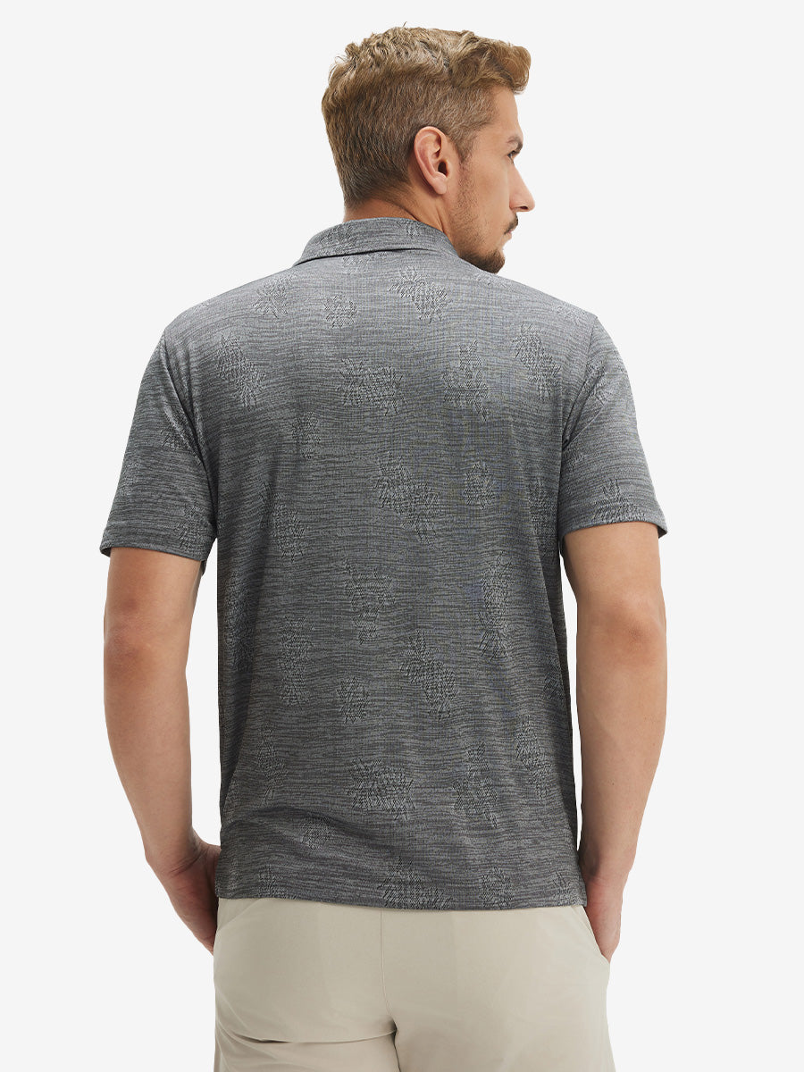 Elevate your style with the Breathable Jacquard Pattern 3-Button Golf Polo. Crafted using jacquard technology, it features intricate plant-inspired patterns and rich texture—adding fashion-forward flair to classic polo design. The relaxed yet tailored fit moves with you, while quick-dry, moisture-wicking fabric keeps you cool and fresh all day. Perfect for the course, casual outings, or anywhere in between.