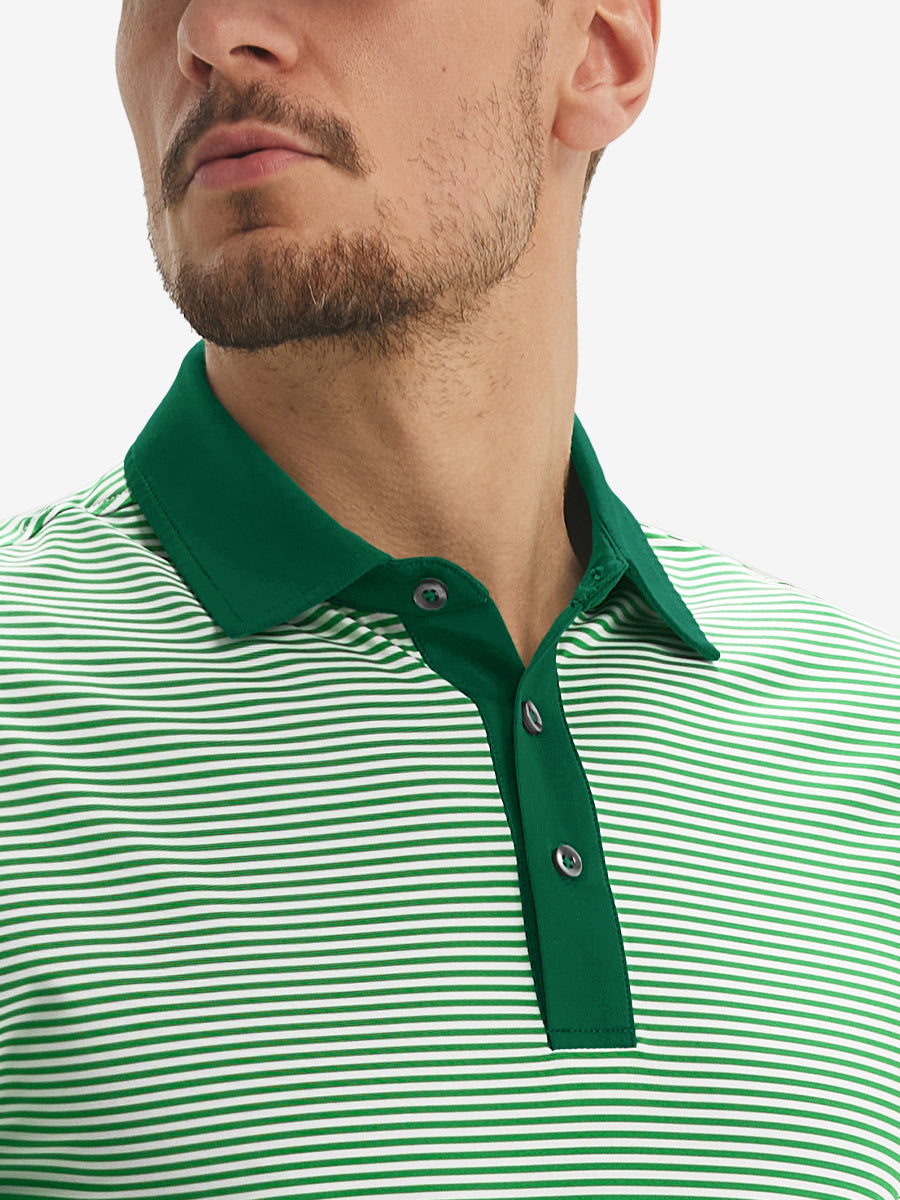 Stay cool and confident in the Upgraded Two-tone Striped Quick Dry Polo Shirt! Made with lightweight, moisture-wicking fabric and UPF 50+ protection, it keeps you dry and comfortable on hot days. The soft, 4-way stretch material moves with you—ideal for golf, outdoor adventures, or casual wear. Its refined collar and crisp two-tone stripes resist curling for a sharp, polished look, while reinforced stitching ensures lasting quality.