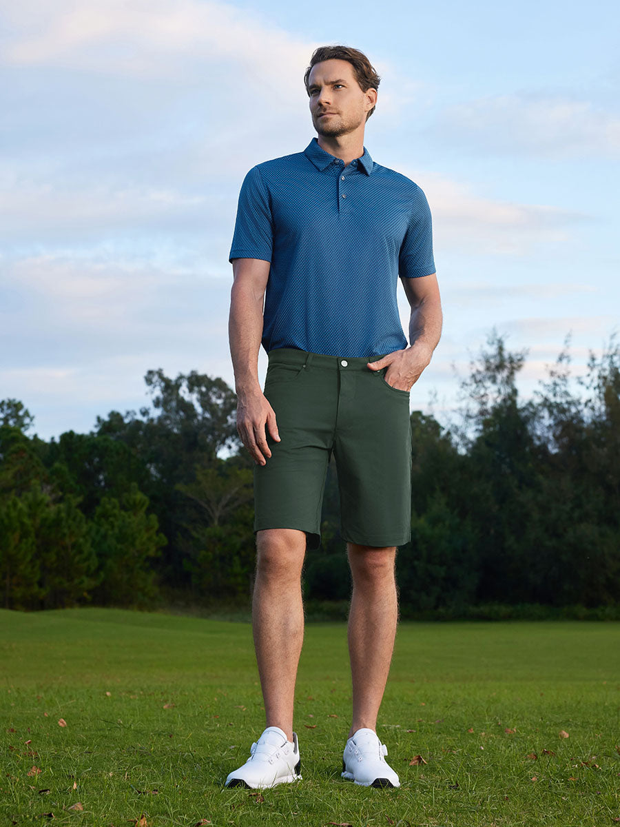 Experience comfort and style with our 4-way Stretch Performance Solid Shorts. Crafted from soft, lightweight, and stretchy materials, these shorts offer exceptional breathability and moisture-wicking properties. The built-in stretch function ensures a comfortable and perfect fit. Featuring waist loops for belt pairing, these dress shorts provide flexibility for daily wear. Plus, the waistband keeps your shirt neatly tucked in during your golf swing. Elevate your wardrobe with these versatile shorts.