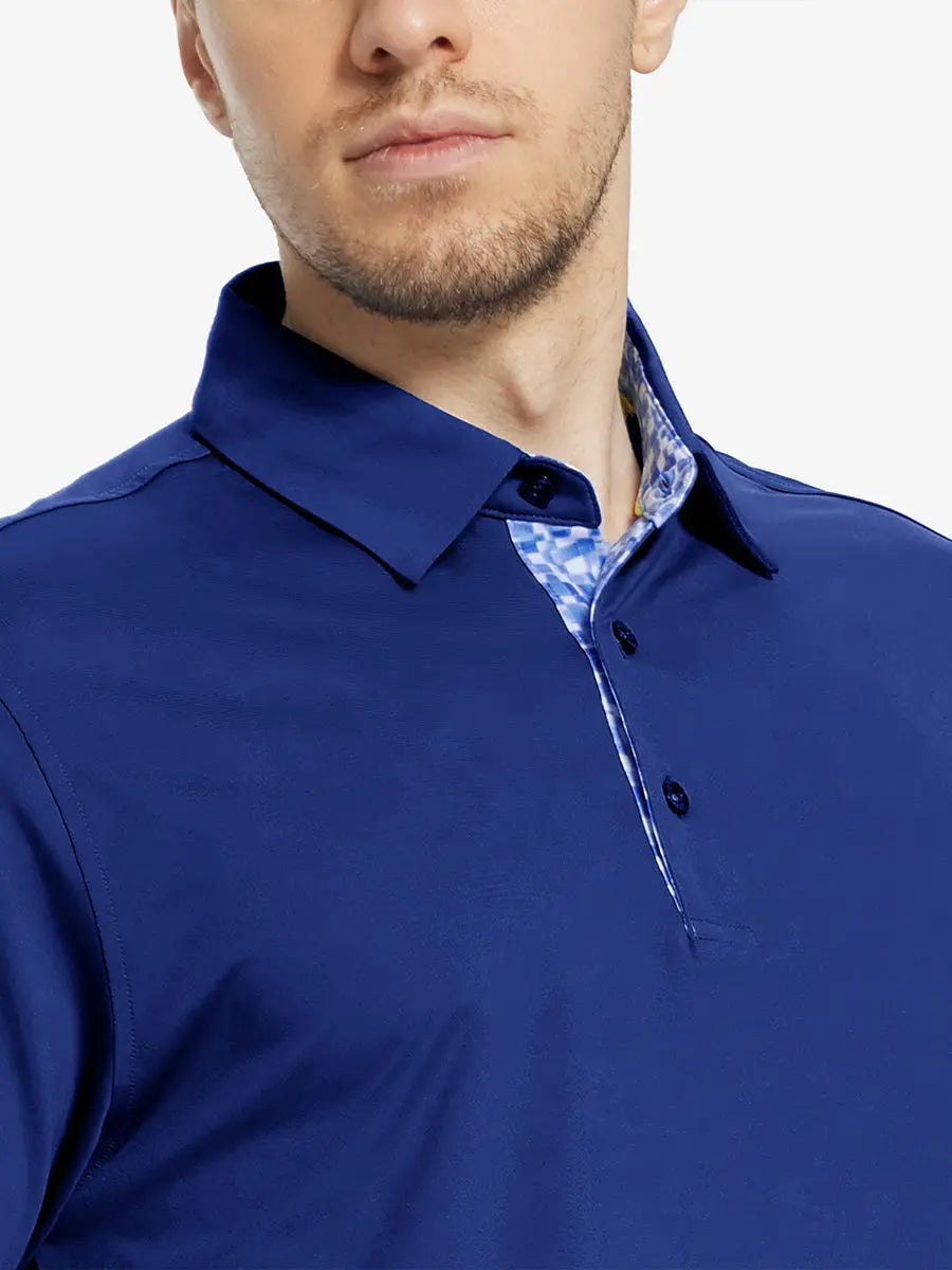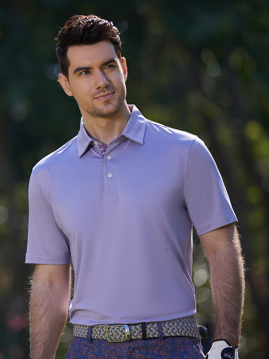This casual golf shirt features a plain jersey design with a contrasting print inside the collar and placket, adding a touch of sophistication. Made from Polyester Spandex, it offers lightweight, moisture-wicking, quick-dry, UPF50+ protection, and a soft hand-feel. With natural stretch and 4-way stretch, stay cool and stylish all day long.