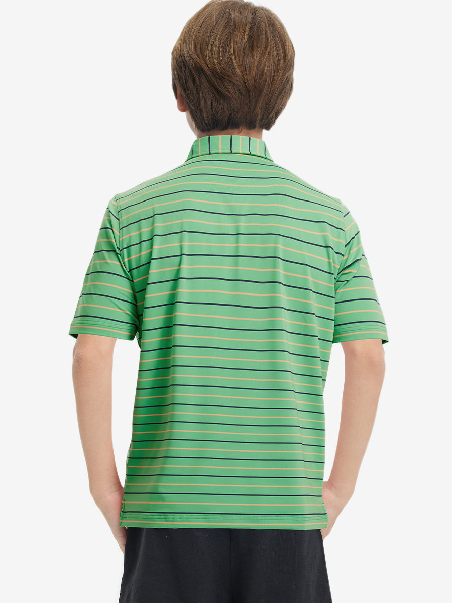 Introducing our Trendy Boys Stripe Polo Shirts! Made from high-end polyester spandex, these soft, skin-friendly, and lightweight shirts keep your little ones cool and dry in hot weather. With 4-way stretch fabric and premium dyeing, this vibrant youth golf shirt remains durable wash after wash, perfect for active kids who love to play.